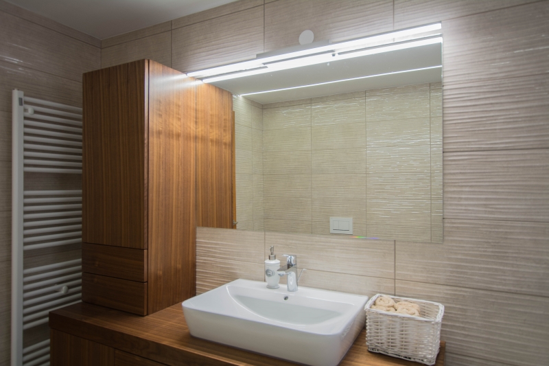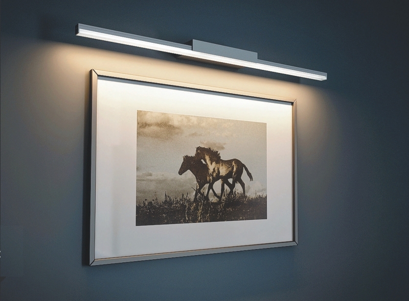 Moderna stenska svetilka narejena iz litega aluminija ima vgrajene visokosvetleče LED diode. Namenjena je za osvetljevanje prostora pred ogledalom v kopalnici, ali pa jo lahko uporabimo kot svetilko za osvetljevanje slik. Svetilka je izdelana v Sloveniji.