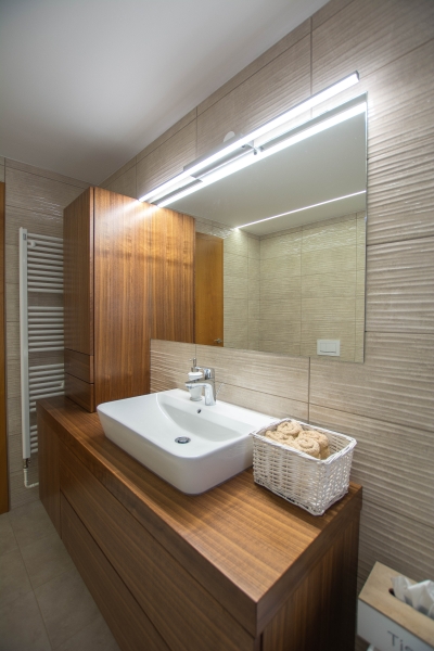Moderna stenska svetilka narejena iz litega aluminija ima vgrajene visokosvetleče LED diode. Namenjena je za osvetljevanje prostora pred ogledalom v kopalnici, ali pa jo lahko uporabimo kot svetilko za osvetljevanje slik. Svetilka je izdelana v Sloveniji.