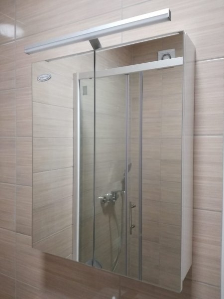 Moderna stenska svetilka narejena iz litega aluminija ima vgrajene visokosvetleče LED diode. Namenjena je za osvetljevanje prostora pred ogledalom v kopalnici. Svetilka je izdelana v Sloveniji.