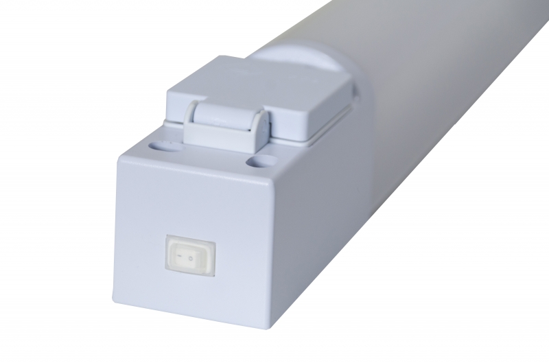 Pohištvena svetilka ima visoko stopnjo zaščite - IP44, kar pomeni, da je zaščitena pred prahom in vlago. Zato je to svetilko primerno vgraditi v kopalniške ali kuhinjske prostore. Vgrajena vtičnica omogoča priključitev različnih naprav za uporabo v kopalnicah ali