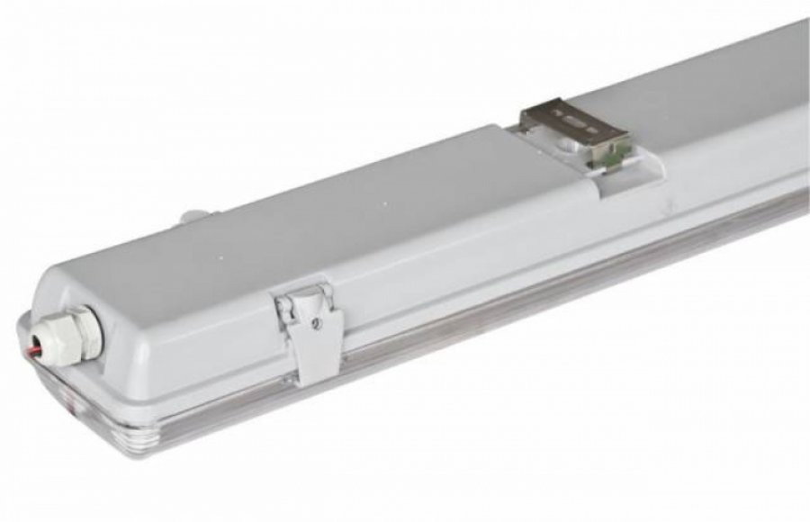 Stropna LED industrijska svetilka z visoko stopnjo zaščite IP65 je primerna za delavnice, proizvodnje, avtomehanične delavnice ipd. Zagotavlja izjemno odpornost pred vlago in prahom. Svetilka je pakirana skupaj s priloženimi sijalkami.